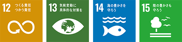 14「海のゆたかさを守ろう」、15「陸の豊かさも守ろう」の達成を目指し、環境に配慮した