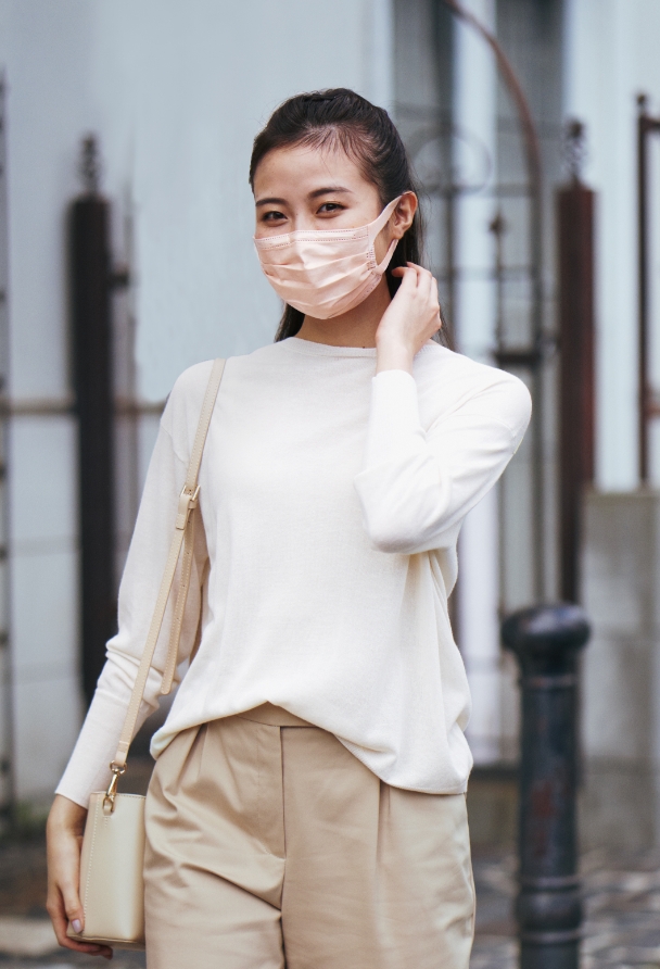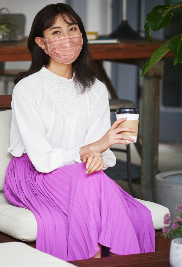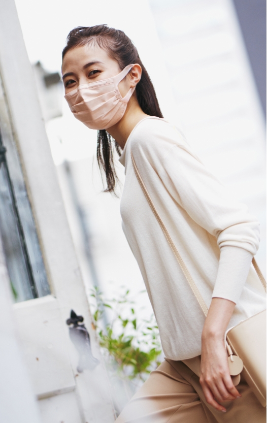 マスクをしていると気になるのが、ファンデーションやリップの付着。「エリカラ」は内側も肌になじむナチュラルカラーなので汚れも目立ちにくくなっています。