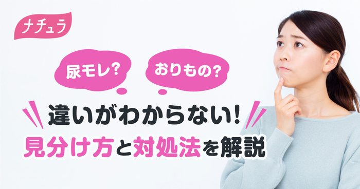 ・ニオイ:尿がモレても、さほどニオイはありません(しばらく放置するとアンモニア臭が気になる場合があります)。一方、おりものは酸っぱい、ヨーグルトのようなニオイを伴うのが特徴です。