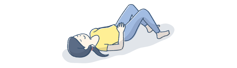 1. あおむけに寝て両ひざを立て、ひざのあいだはこぶし1つ分くらい開けます。
