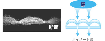 水分が凹部に集まり一気に吸収。