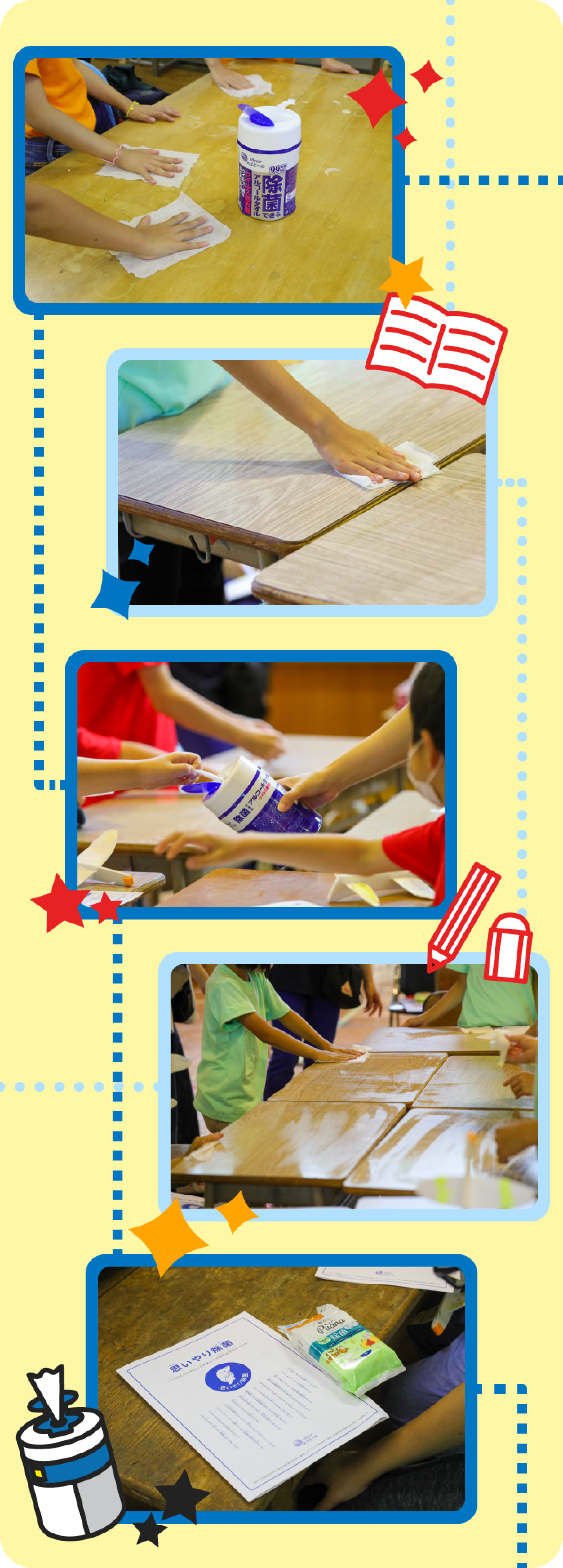 全国の小学校で「エリエール除菌できるアルコールタオル ウイルス除去用」を設置いただき、思いやり除菌活動を実践。