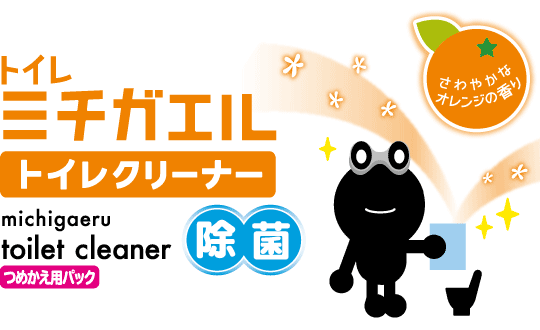 かわいいミチガエルのデザインシート採用。改良したエンボスシートにより汚れ落ち性能アップ。オレンジの香りがお掃除のときにさわやかに広がります。