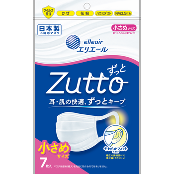 「elleair」マークがマスク本体の左下になる面を外側にして、着用してください。形状:プリーツタイプ(使いきりタイプ)