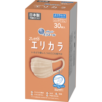 鼻を押さえたまま、プリーツの折り目を縦に伸ばし、顎下方向にマスクを広げます。| 本体色 | ピンクベージュ |