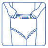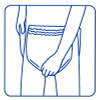 大便の時は、便がこぼれないように片手で股間部を持ってとりかえてください。