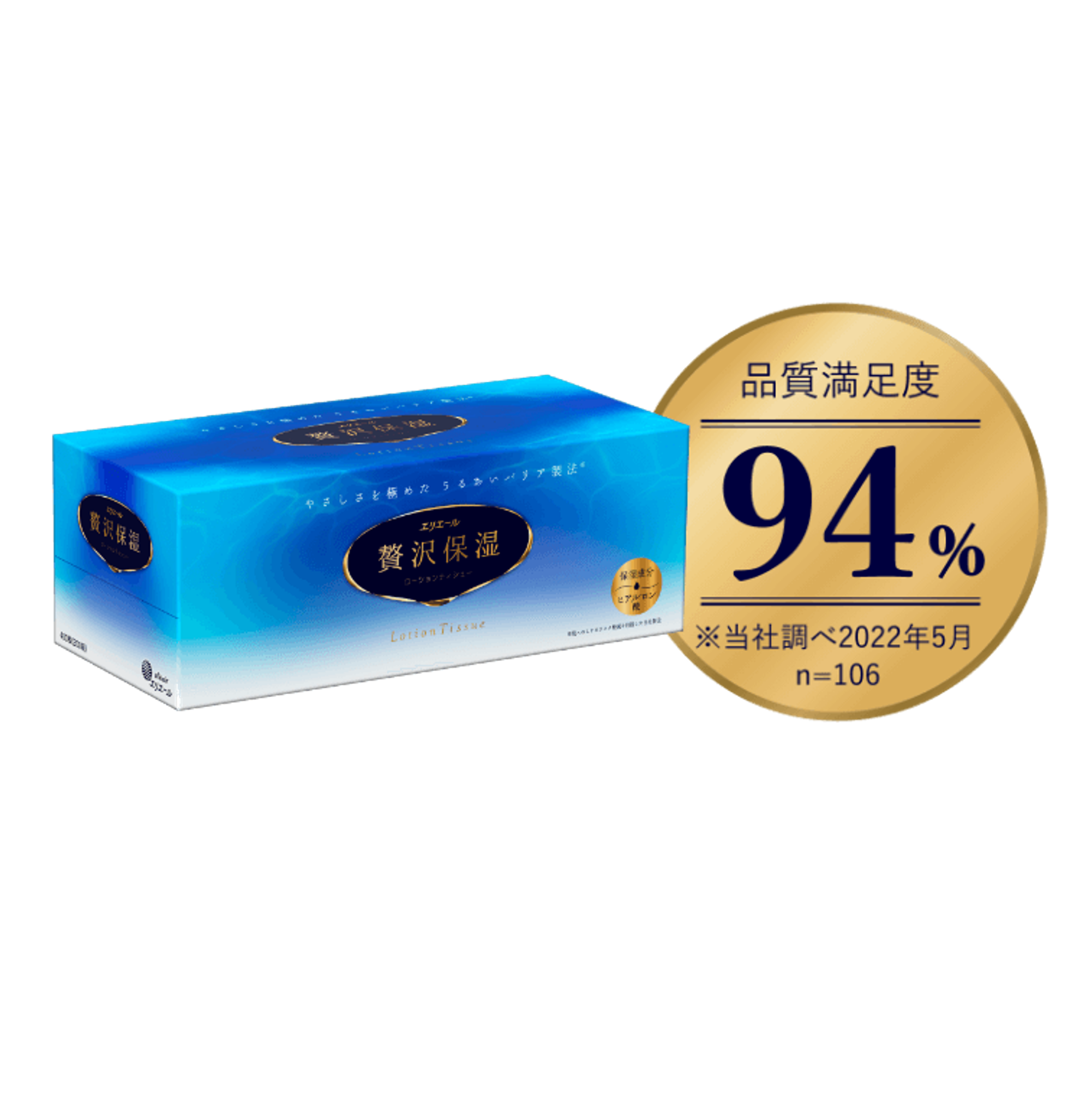 保湿成分がティシューと肌との間の潤滑油の働きをすることで、一般的なティシューよりも肌との摩擦を抑えます。