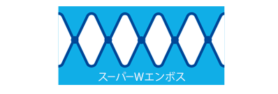 Tip To TipのスーパーWエンボス加工により、2倍の吸水性を実現。ふき取り時、肌にはりつきにくいトイレットペーパーです。
