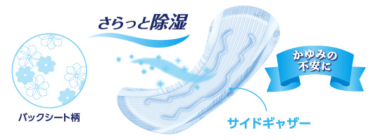 トイレまで間に合わず、外出時不安な方に。水分をすーっとひきこむさらさら持続シート。