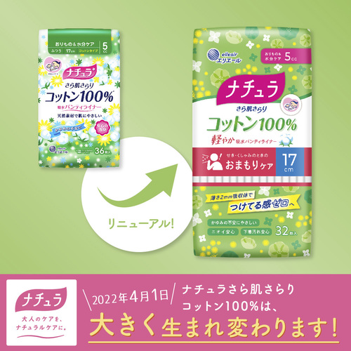ナチュラ さら肌さらり おまもり吸水ライナー 17cm 5cc