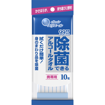 かさばらず、持ち運びに便利な携帯用です。 アルコールを配合したシートで、身のまわり品を拭くだけで簡単に菌を除去します。 速乾性が高く、拭き取り跡が残りにくくなっています。 外出先・旅行先で気になる時に、手軽にお使いください。