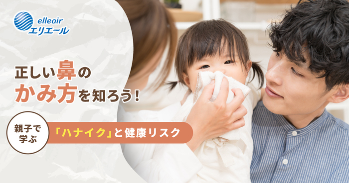 鼻水は、ウイルスや細菌、ホコリなどを体外へ流し出すための重要な体の働きです。しかし、間違った鼻のかみ方を続けていると、鼻や耳の健康リスクを招くおそれがあります。そこで大切になるのが、保護者が子どもに正しい鼻のかみ方を教える「ハナイク」です。