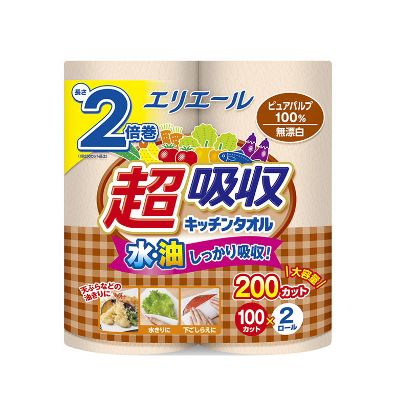 エリエール 超吸収キッチンタオル 無漂白 2R (100カット)のレビューを投稿しました。